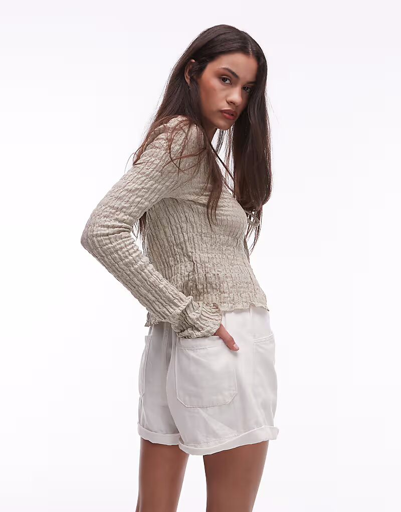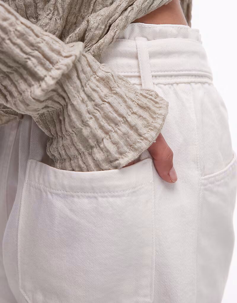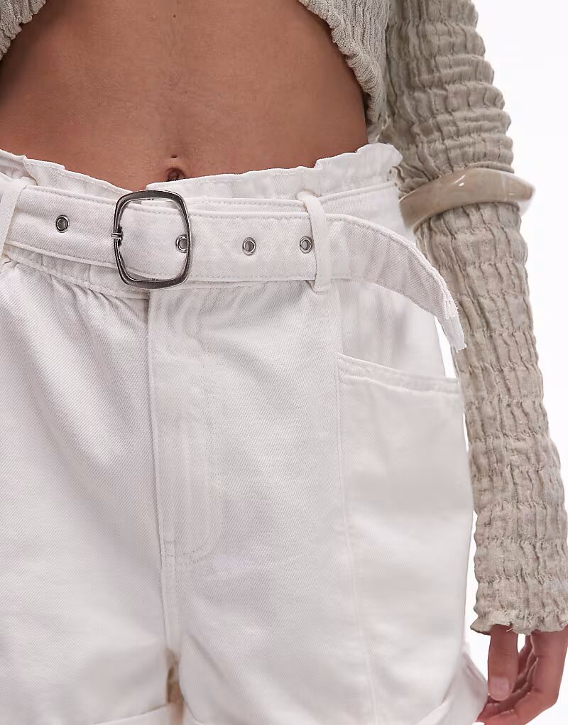 Джинсовые шорты в стиле mom с поясом Mango белого цвета