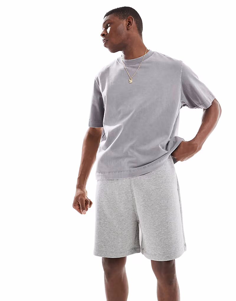 Шорты средней длины ASOS DESIGN Essential oversize серого меланжевого цвета