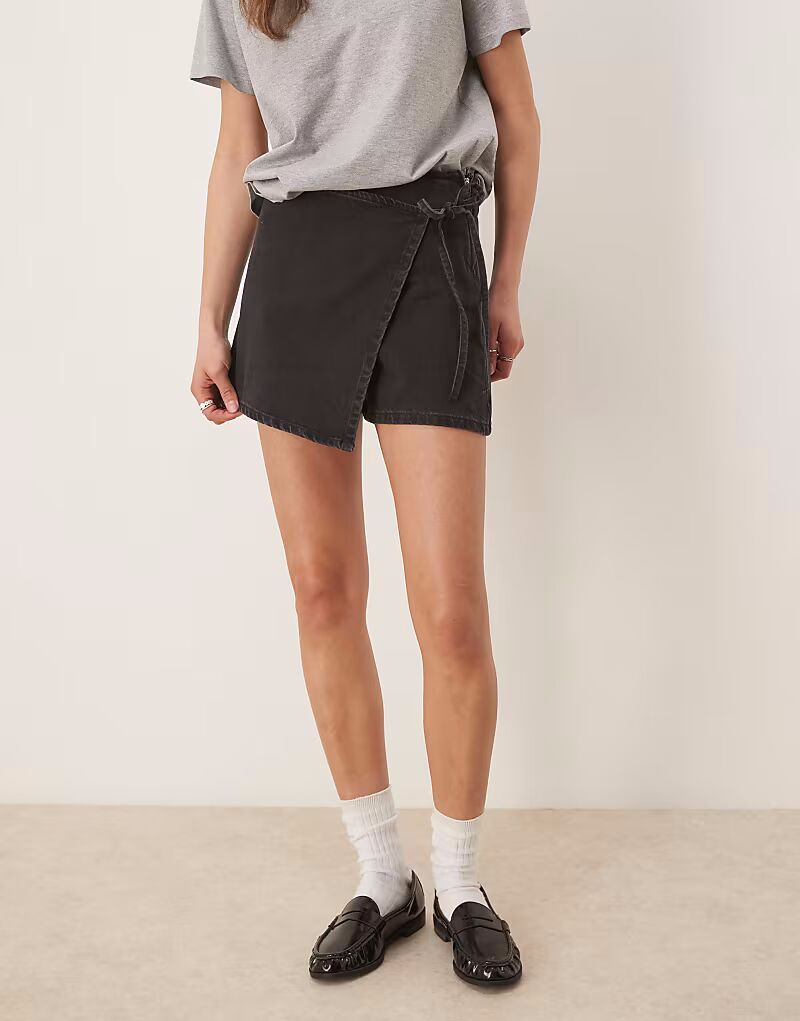 Джинсовая юбка-шорты ASOS DESIGN черного цвета