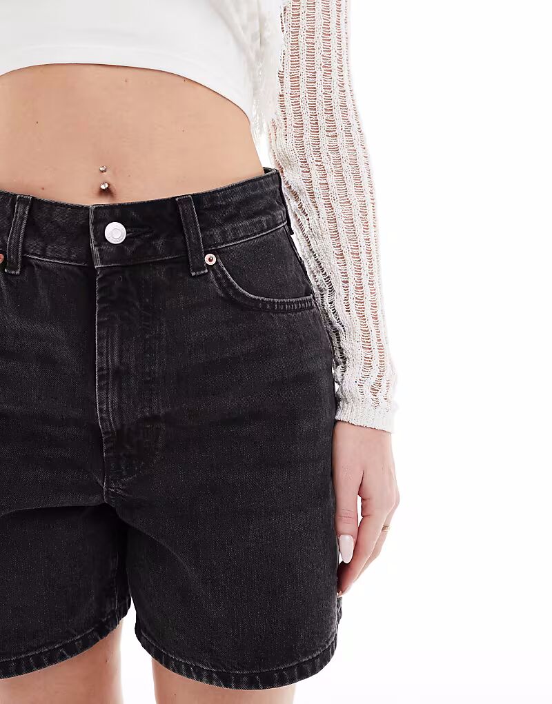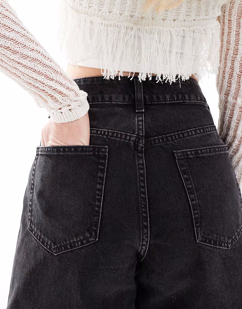 Шорты из денима в стиле папы ASOS DESIGN Hourglass черного цвета