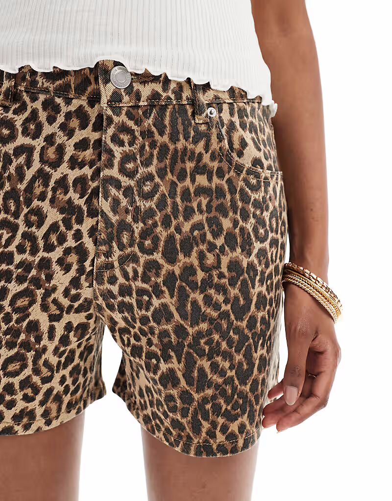 Джинсовые шорты Vero Moda с выцветшим леопардовым принтом