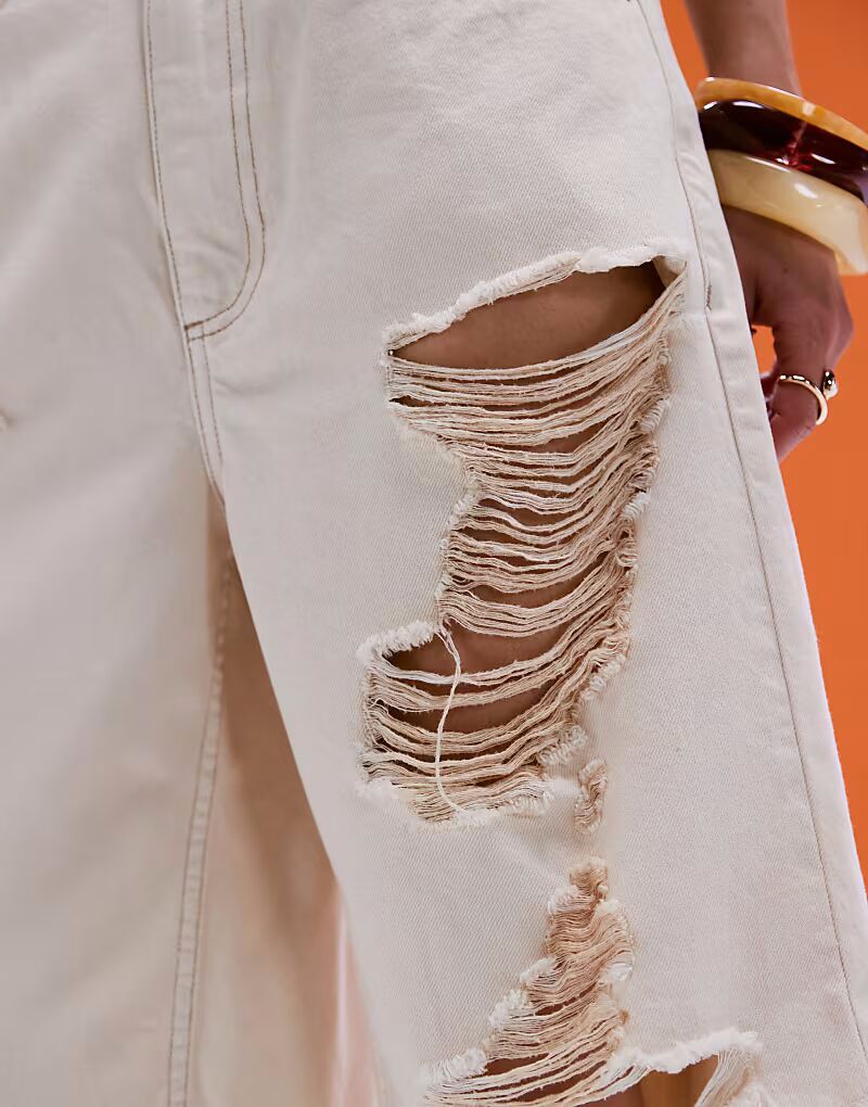 Джинсовые шорты-бермуды ASOS DESIGN с разрывами цвета экрю