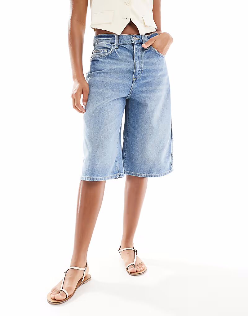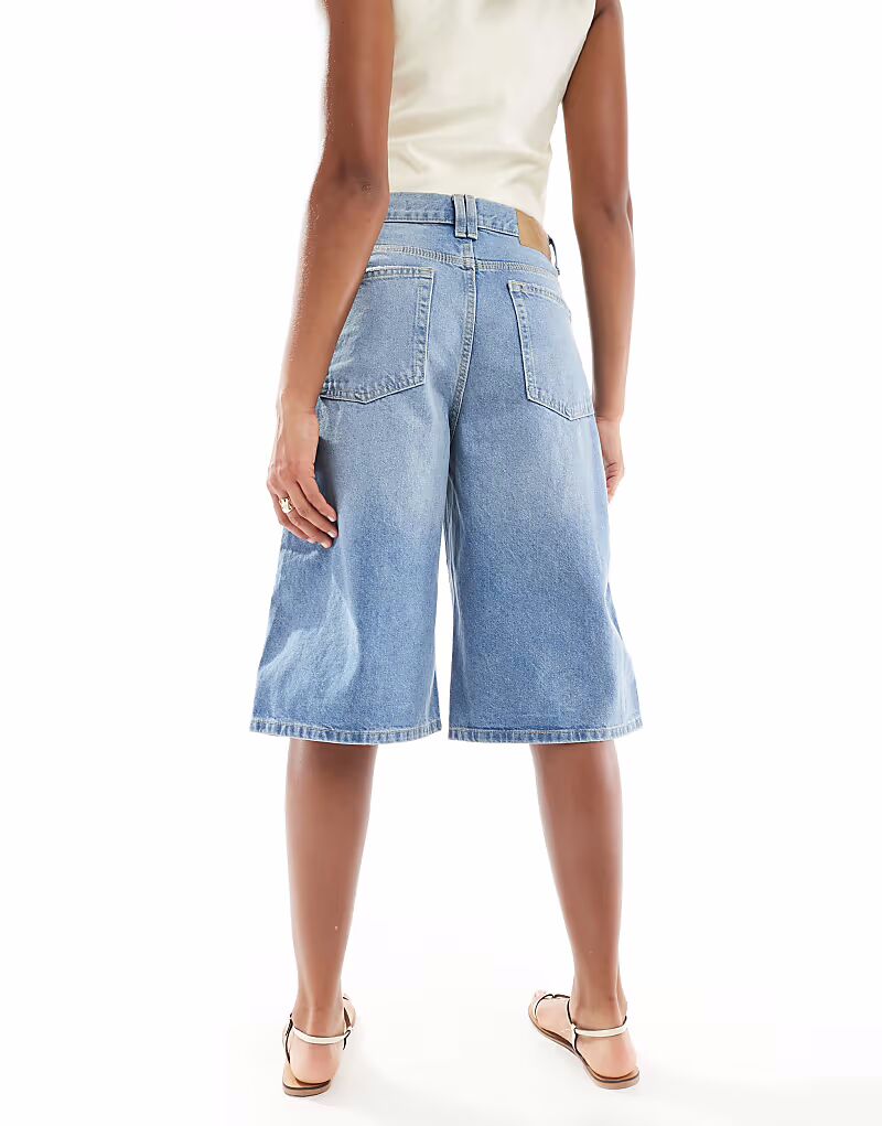 Длинные джинсовые шорты в стиле 90-х в синей дымке Cotton:On