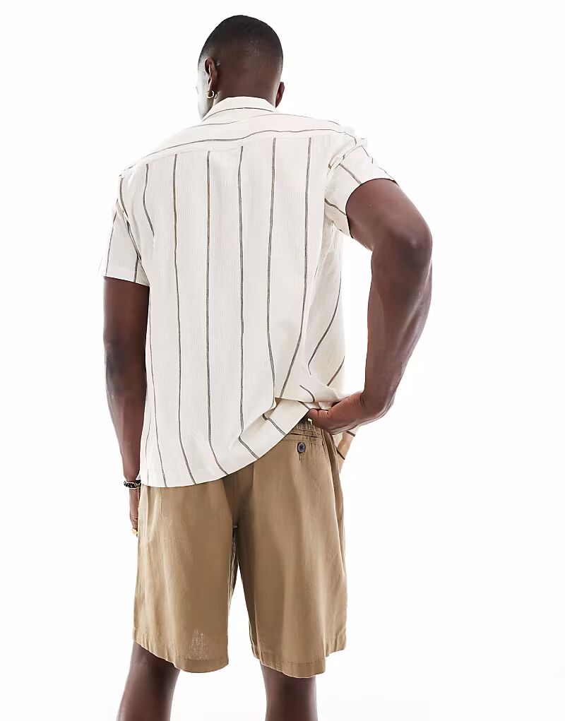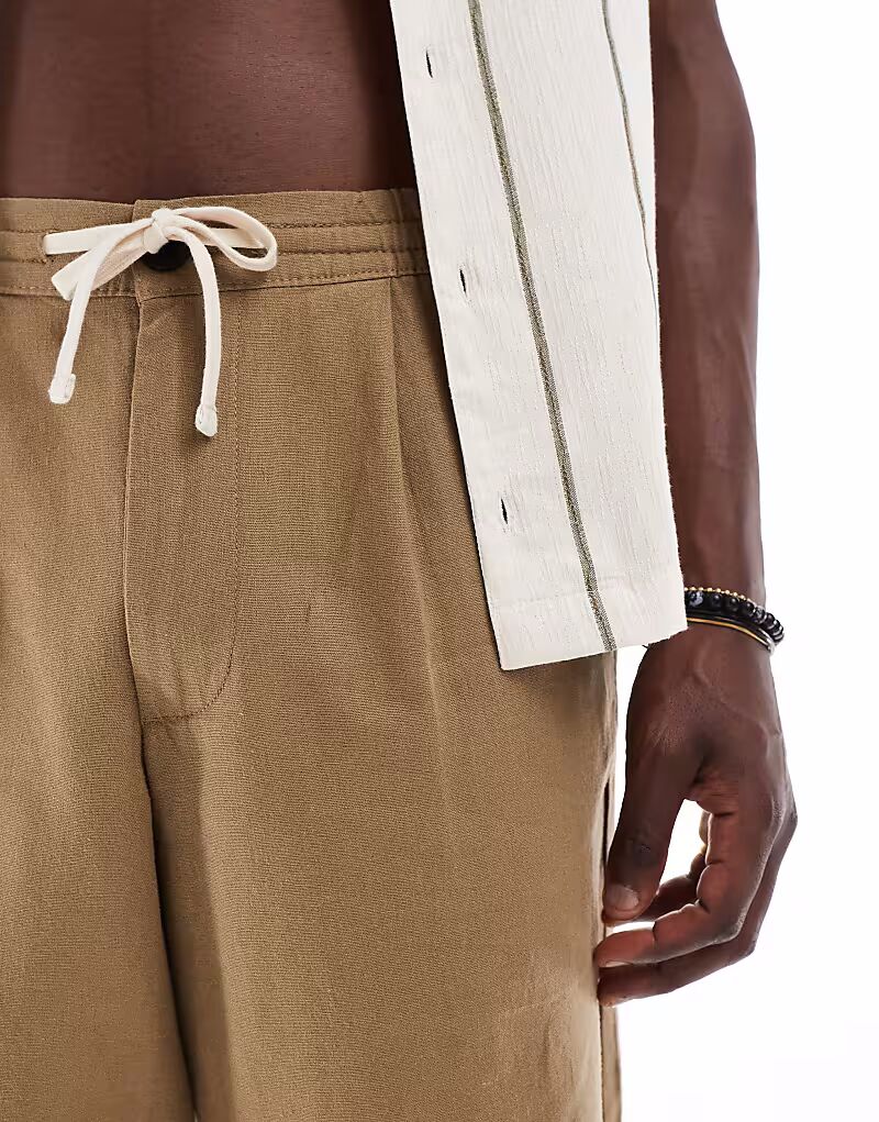 Шорты из потертого льна с завязками в каменном цвете Threadbare