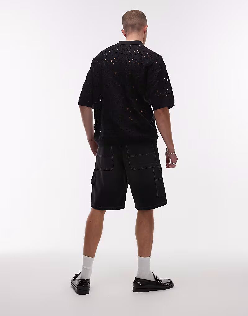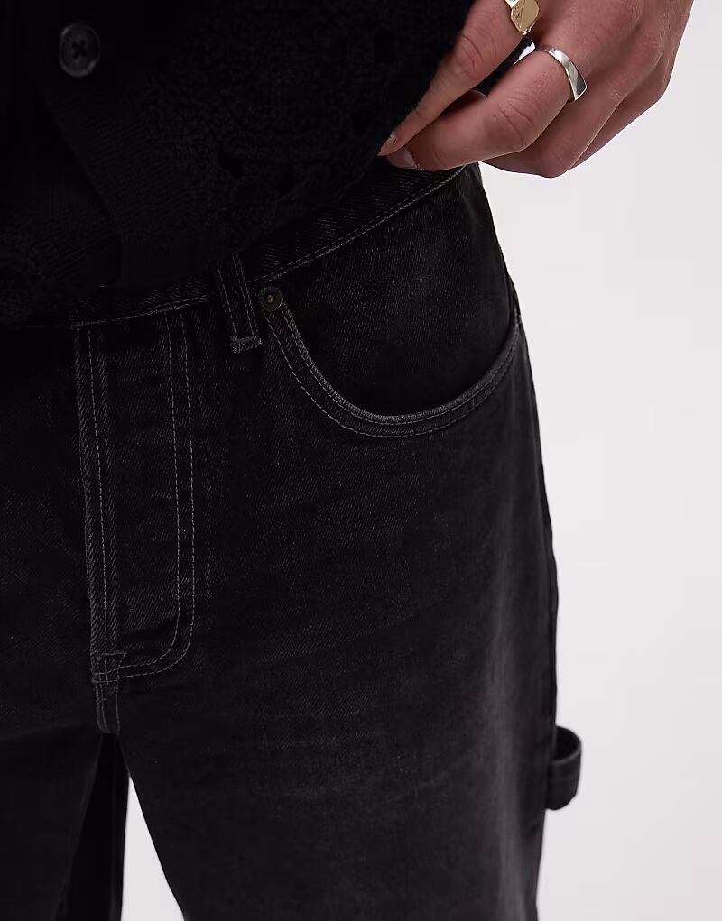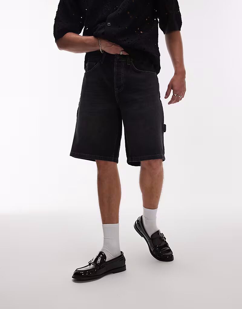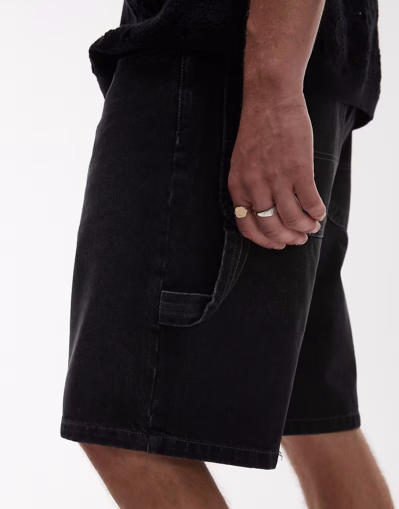 Шорты из денима Topman Carpenter черного цвета с потертостями
