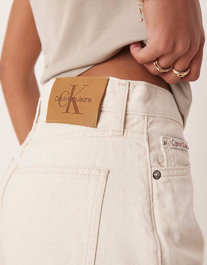 Удлиненные джинсовые шорты Calvin Klein Jeans цвета экрю