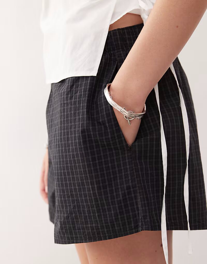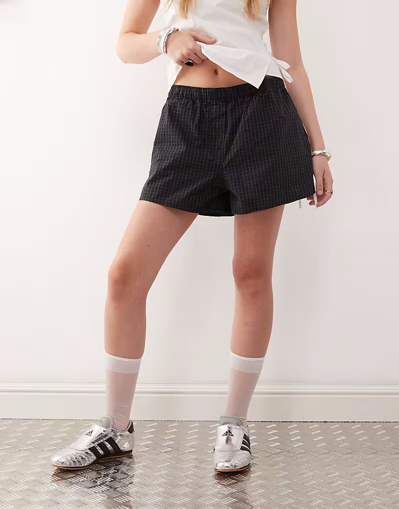 Шорты в будничную клетку черного цвета Weekday