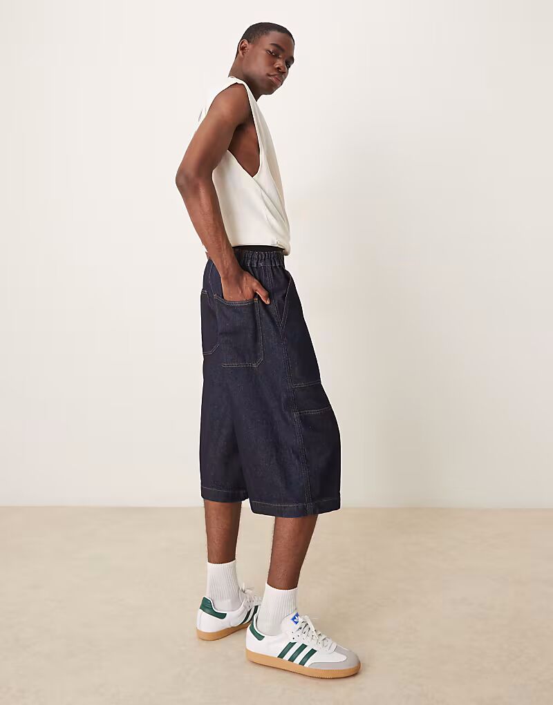Удлиненные джинсовые шорты ASOS DESIGN в цвете полувыбеленный синий