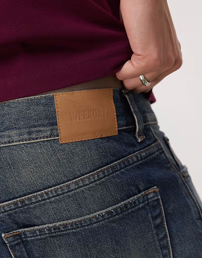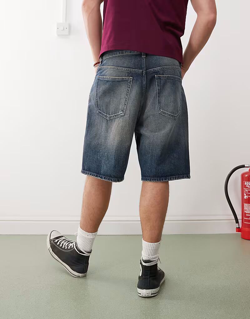 Мешковатые джинсовые шорты Weekday Galaxy темно-синего цвета с эффектом выцветания