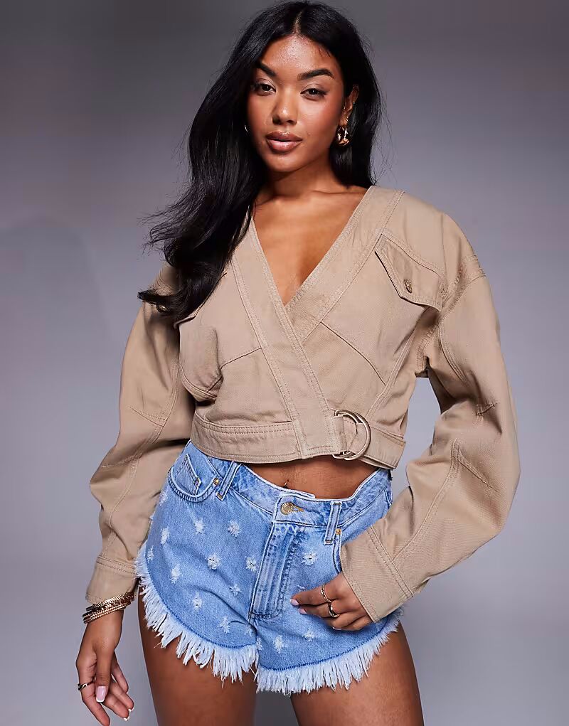 ASOS X THE SOURCED COLLECTION шорты из микроденима с эффектом потертости ASOS DESIGN