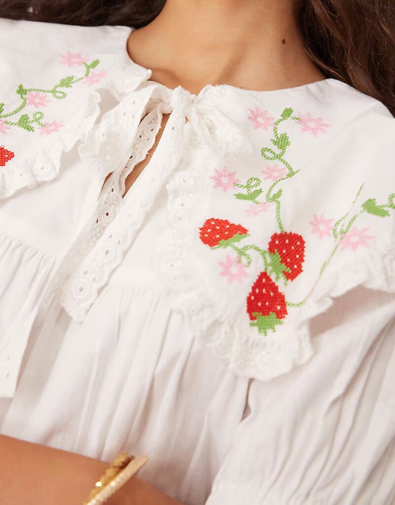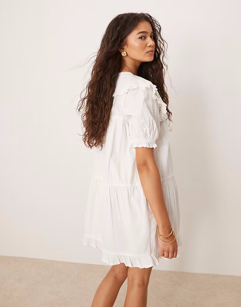 Платье-халат с вышитыми деталями Neon Rose белого цвета