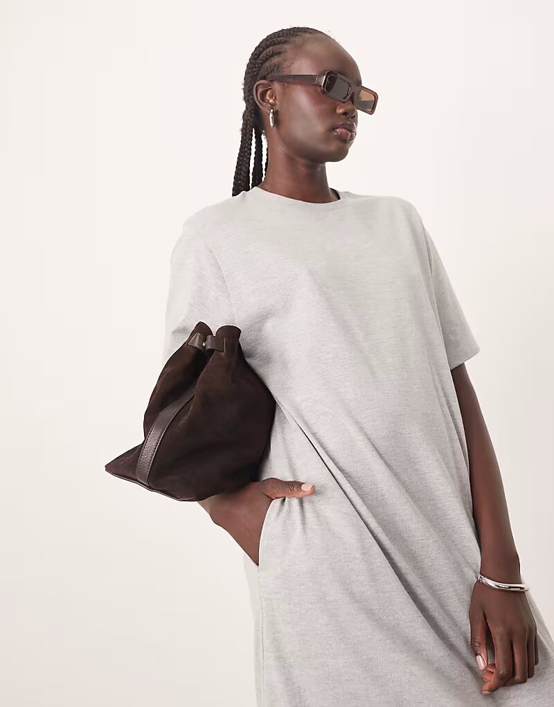 ARRANGE премиум-класса плотное платье-футболка миди серого меланжевого цвета