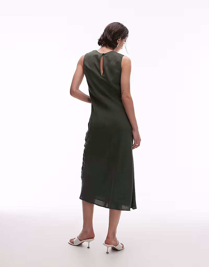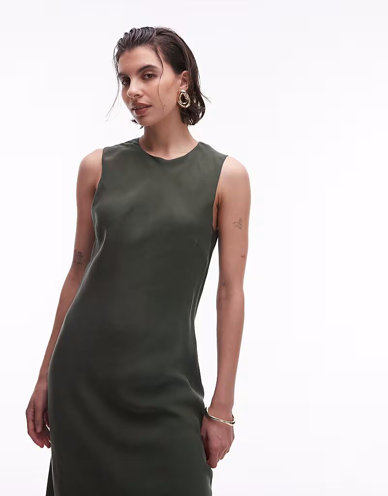 Платье миди из атласа Mango оливкового цвета