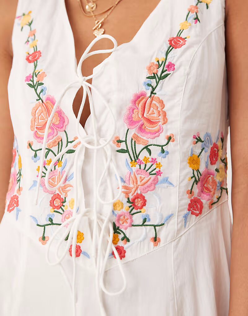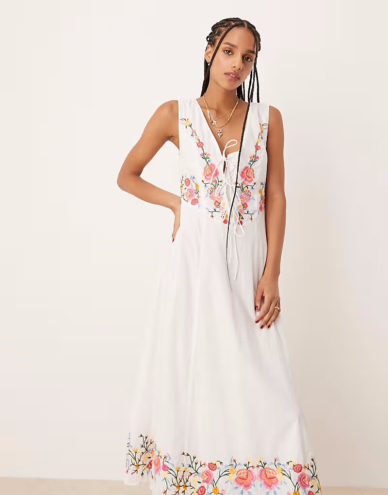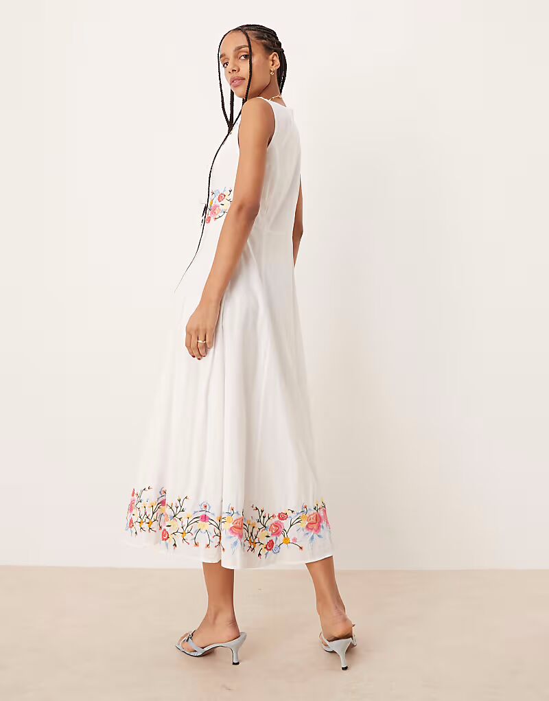 Платье-миди Nobody's Child Terra белого цвета с вышивкой