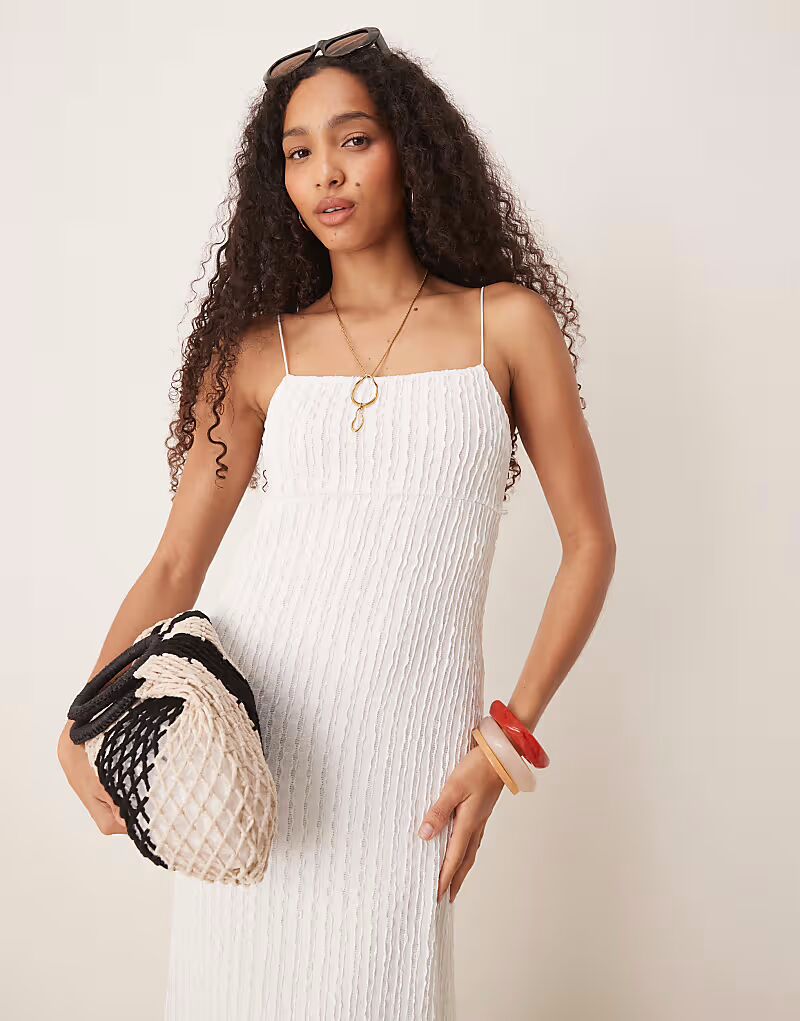ASOS DESIGN фактурное платье миди белого цвета