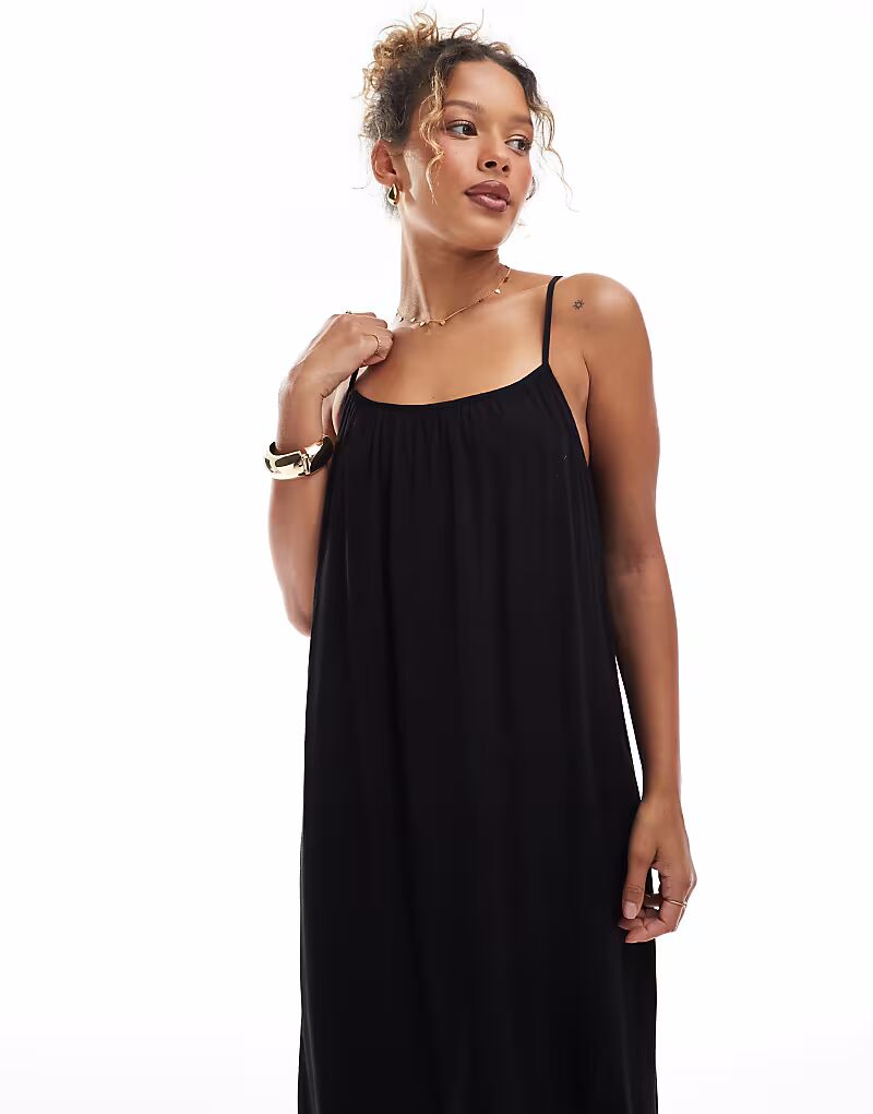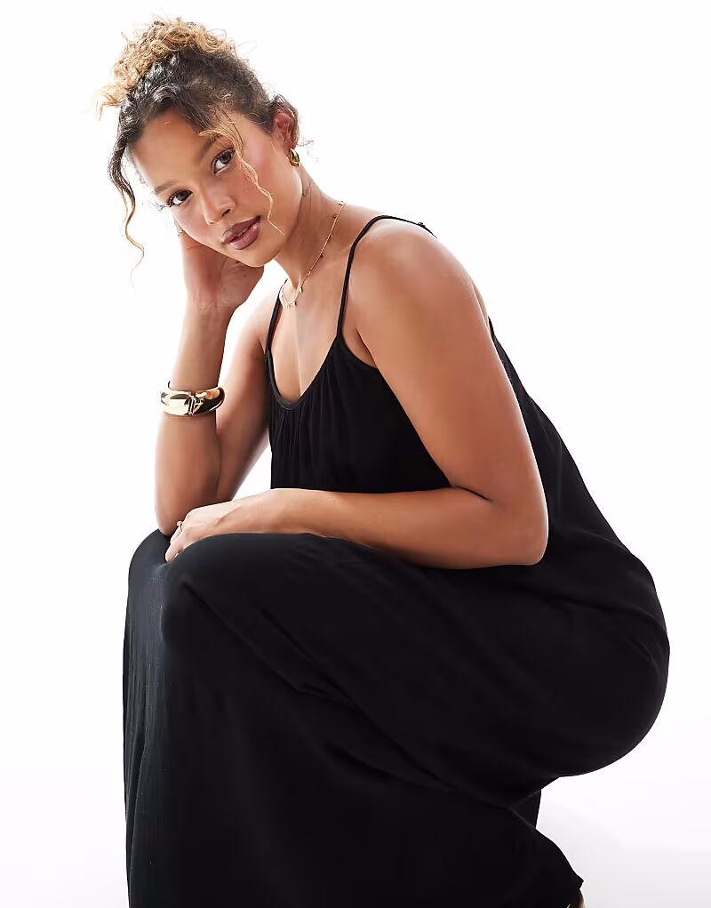 ONLY фактурное платье макси на бретелях черного цвета 5 738₽