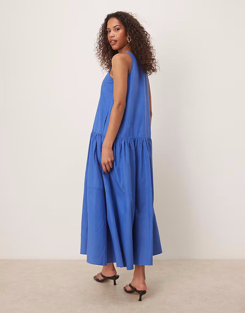 Многоярусное платье миди Ghospell с контрастным бантом синего цвета