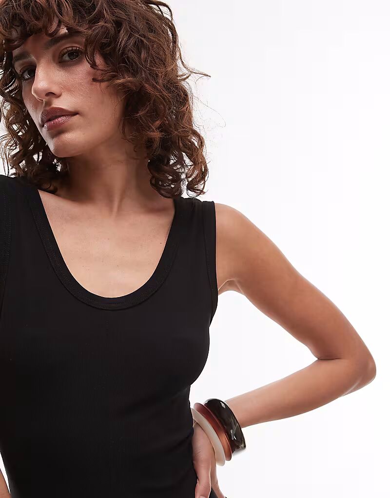 Платье миди без рукавов ARKET в плотный рубчик черного цвета