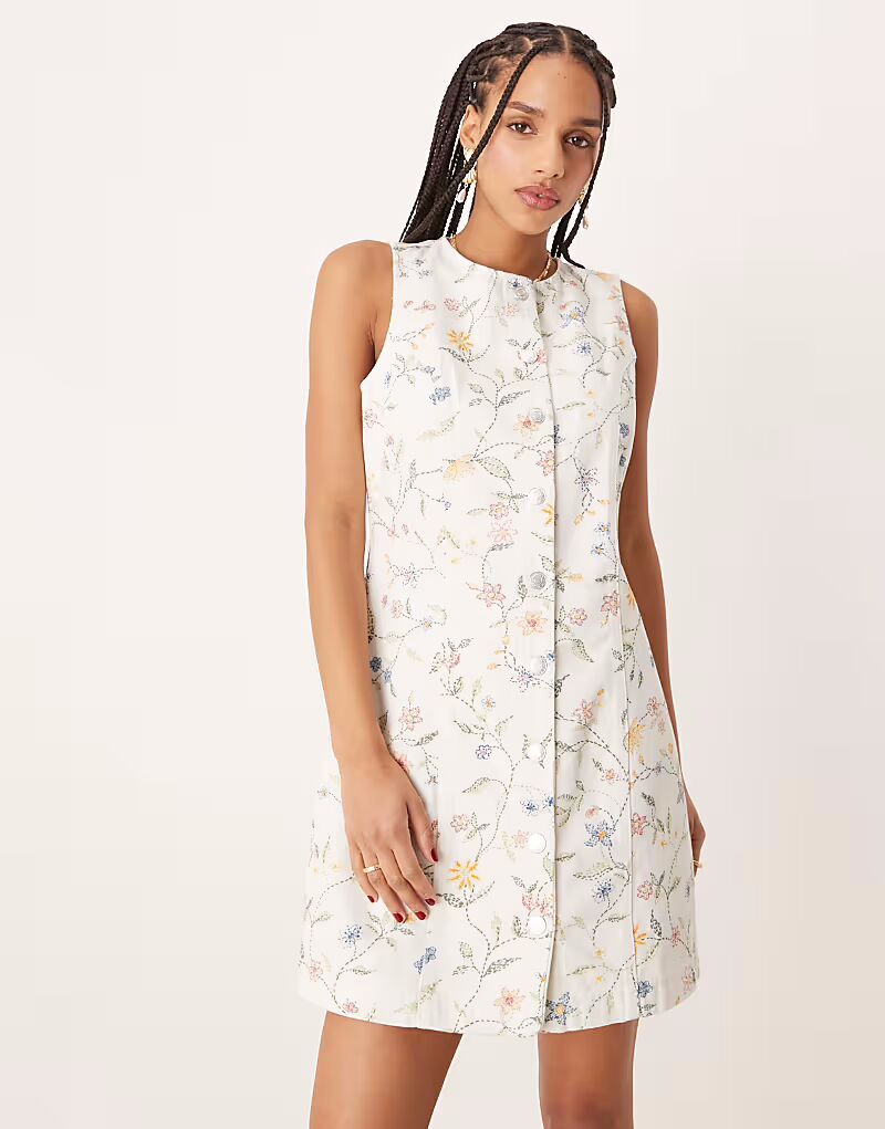 Платье-мини-сарафан Nobody's Child Ned из денима с белыми цветочками