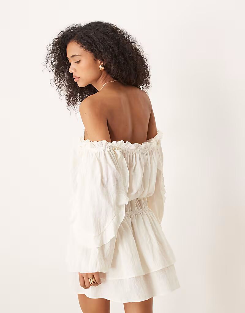 ASOS DESIGN хлопковое мини-платье с оборками в стиле бардо кремового цвета