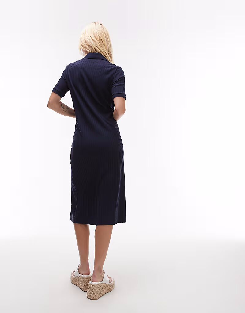 Платье-поло миди ARKET из трикотажного рибана темно-синего цвета