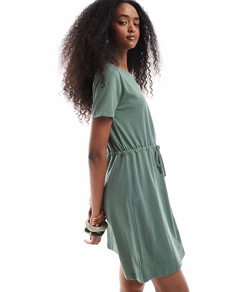 Мини-платье Vero Moda из джерси с завязкой на талии цвета хаки