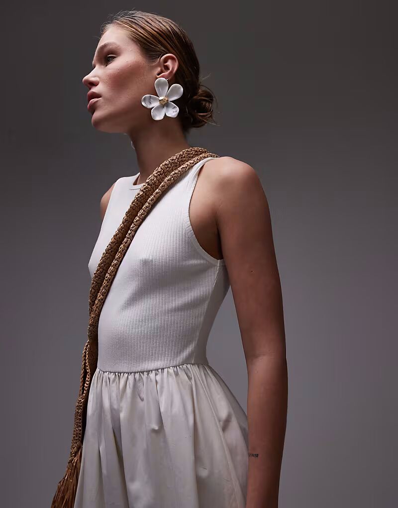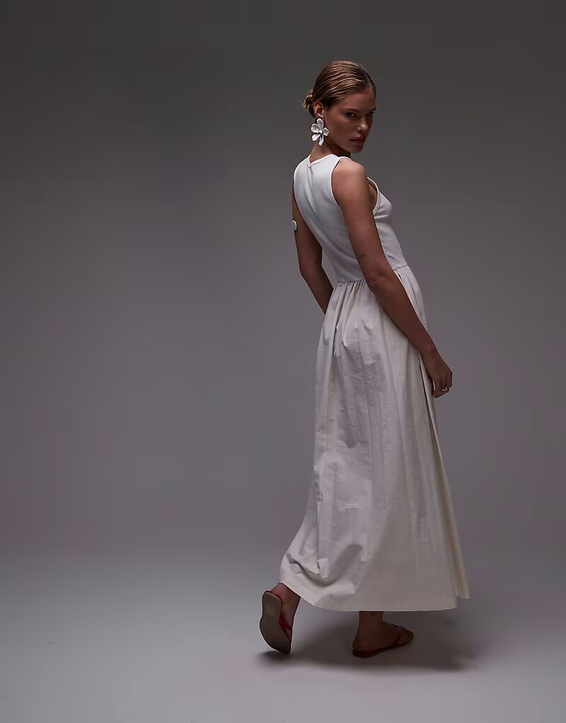 Платье макси из смеси поплина Topshop в цвете «кремовый»