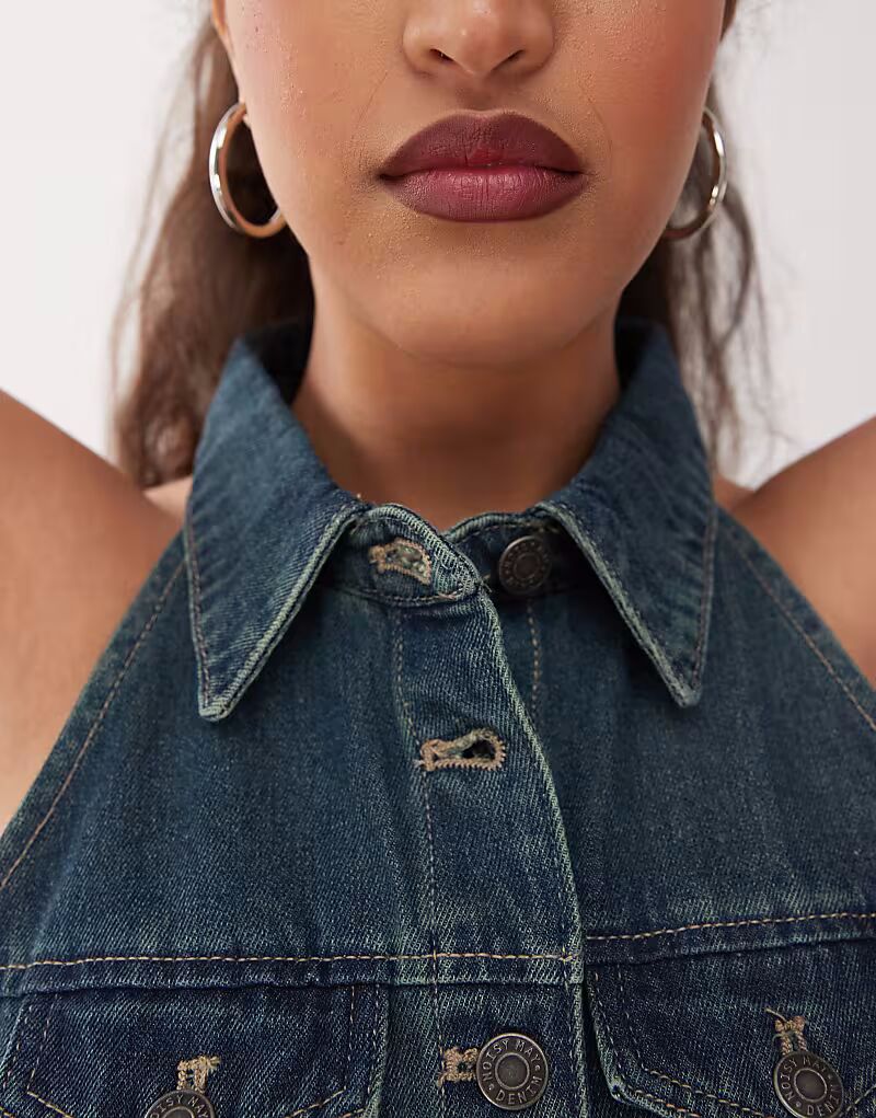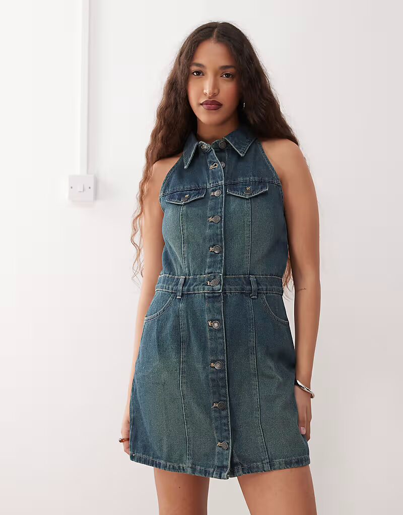 Платье Noisy May из денима с воротником-стойкой и синим оттенком