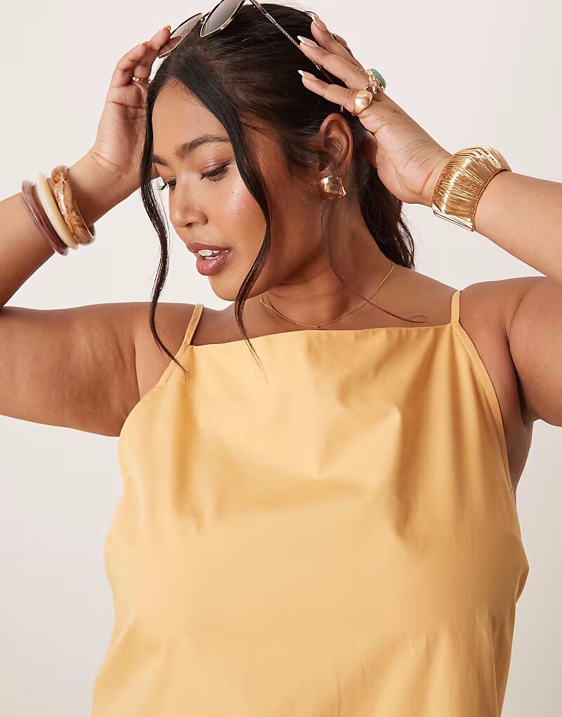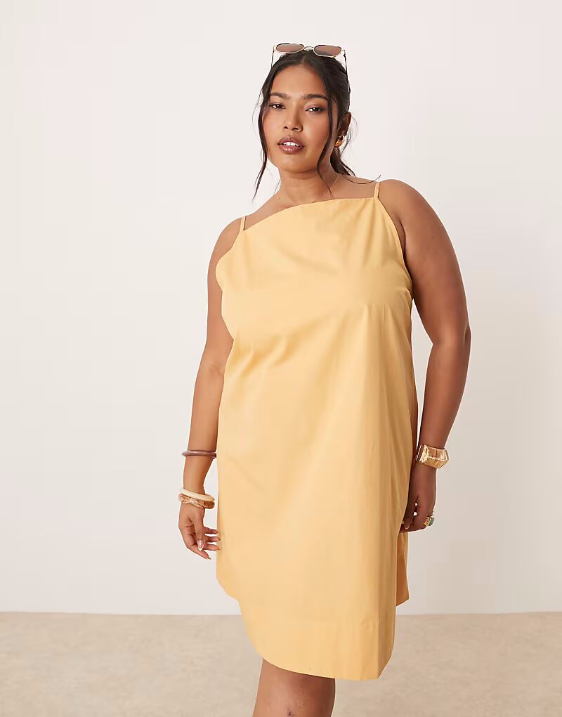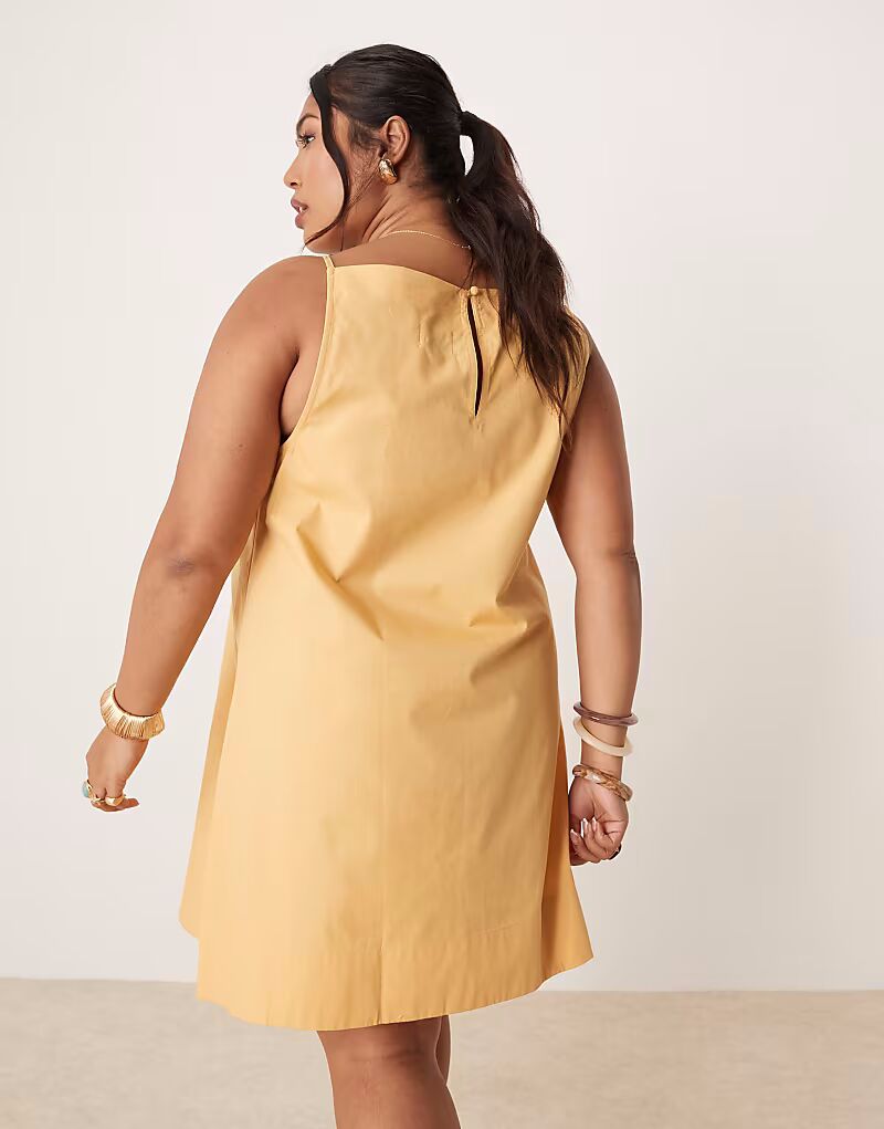Платье ASOS DESIGN Curve slash neck shapeless mini in golden sand ASOS Curve
