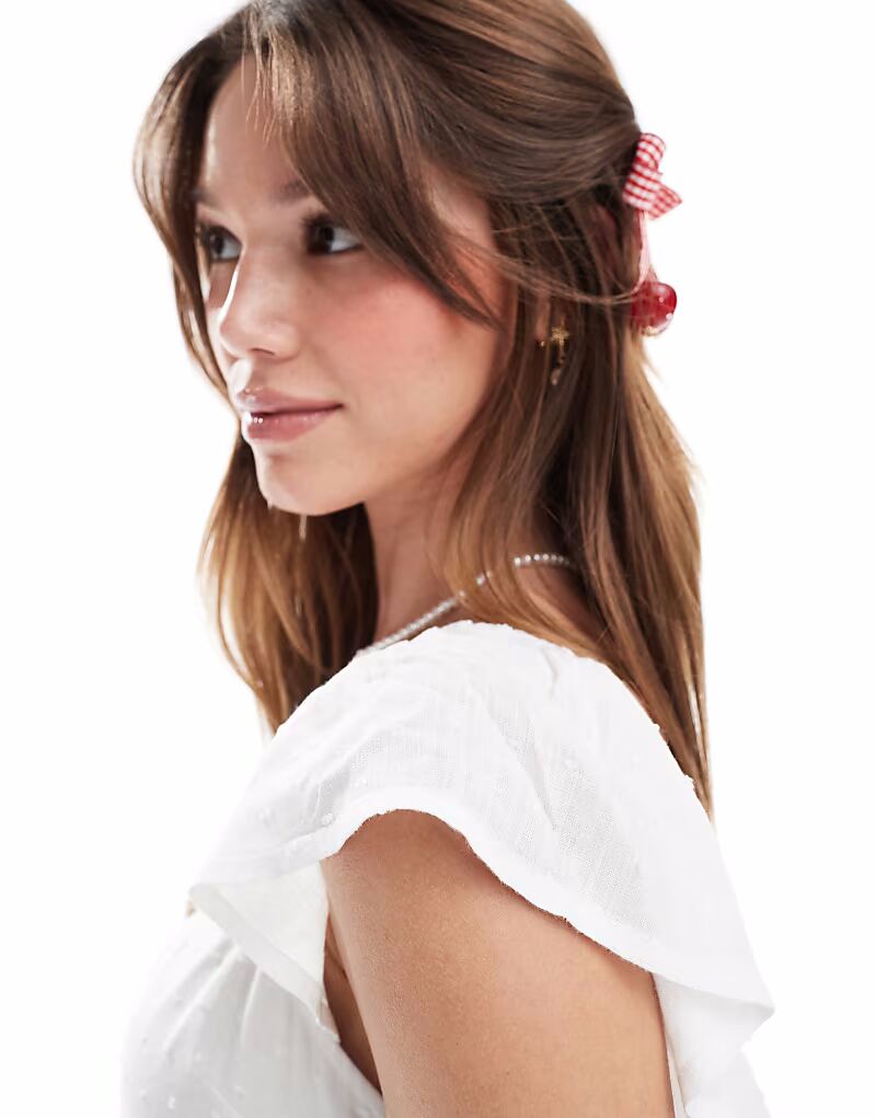 Платье мини-юбка Hollister flutter с короткими рукавами белого цвета