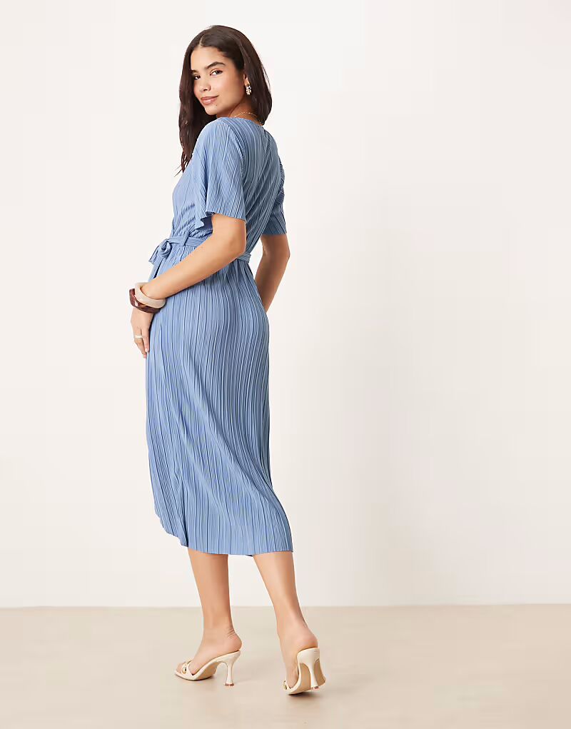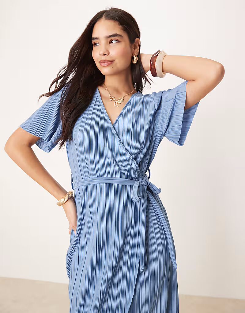 Платье-миди YAS с запахом и плиссе синего цвета