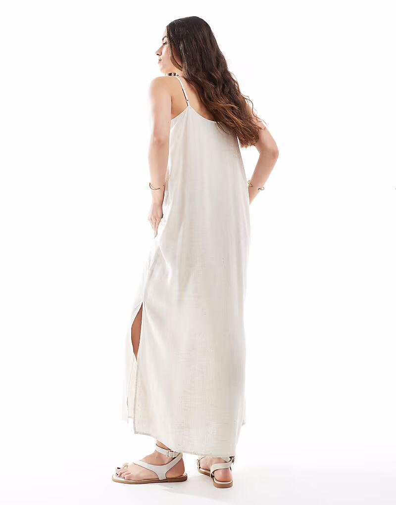 Длинное платье-рубашка Pieces из льна Touch цвета березовый крем