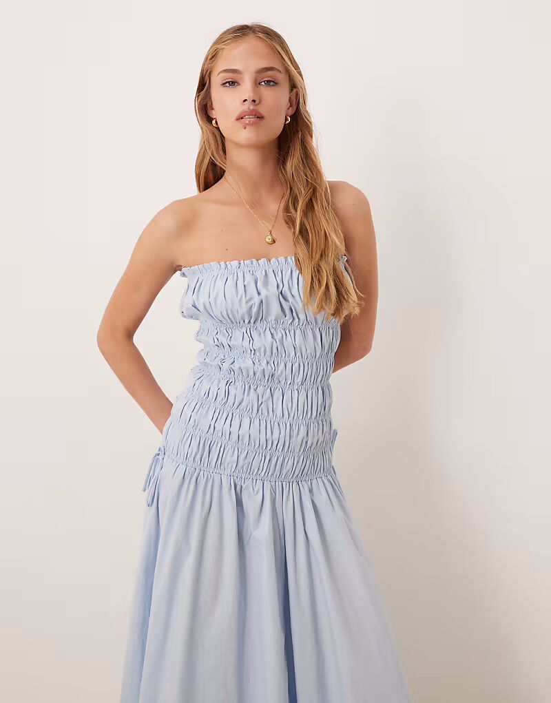 Платье мидакси VRG GRL isable с присборенной грудью синего цвета