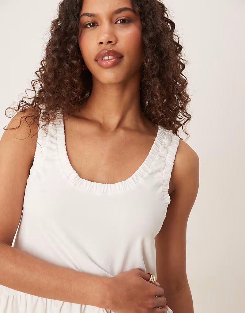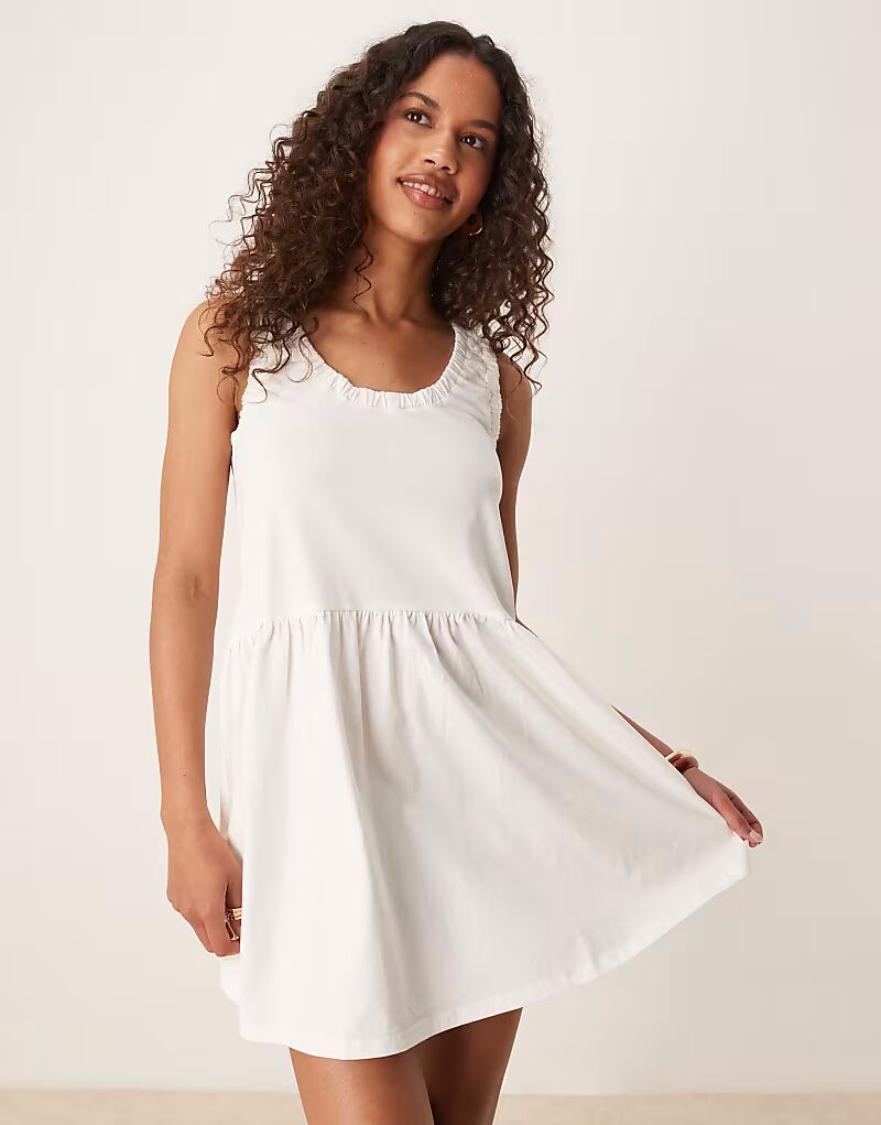 Мини-платье ASOS DESIGN со сборками и глубоким вырезом в цвете «кремовый»