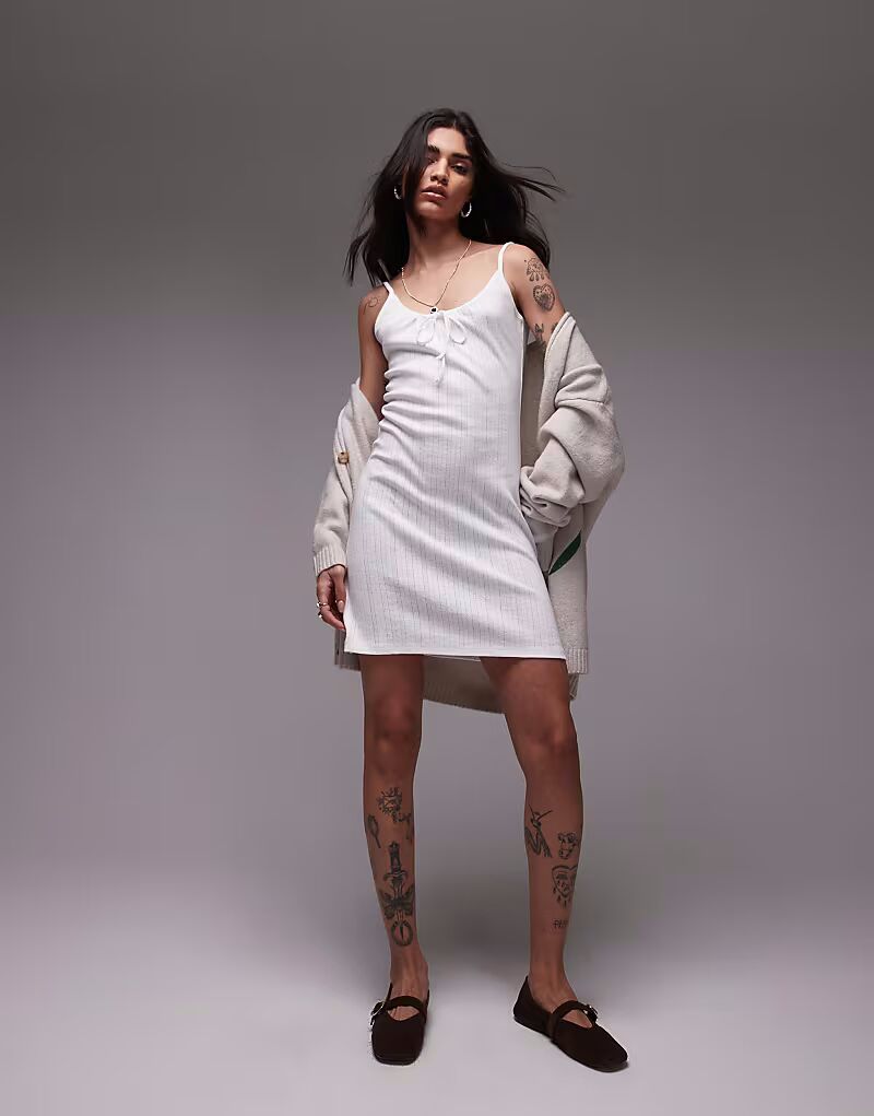Мини-платье Topshop с завязками спереди белого цвета 3 099₽