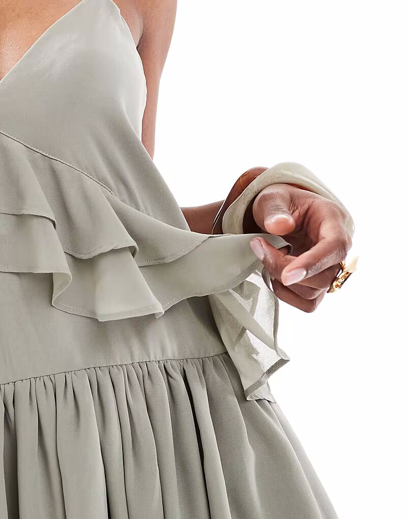 Мини-платье Monki с развевающимися оборками цвета хаки