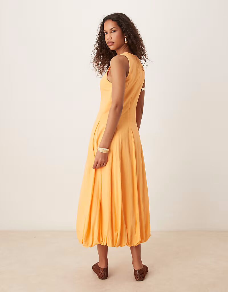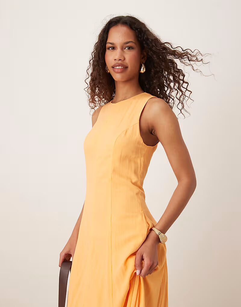 Платье миди с драпировкой и подолом цвета папайи цвета манго Mango