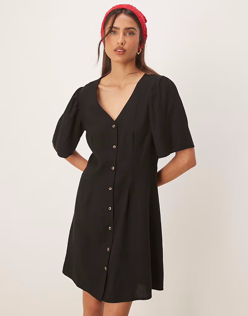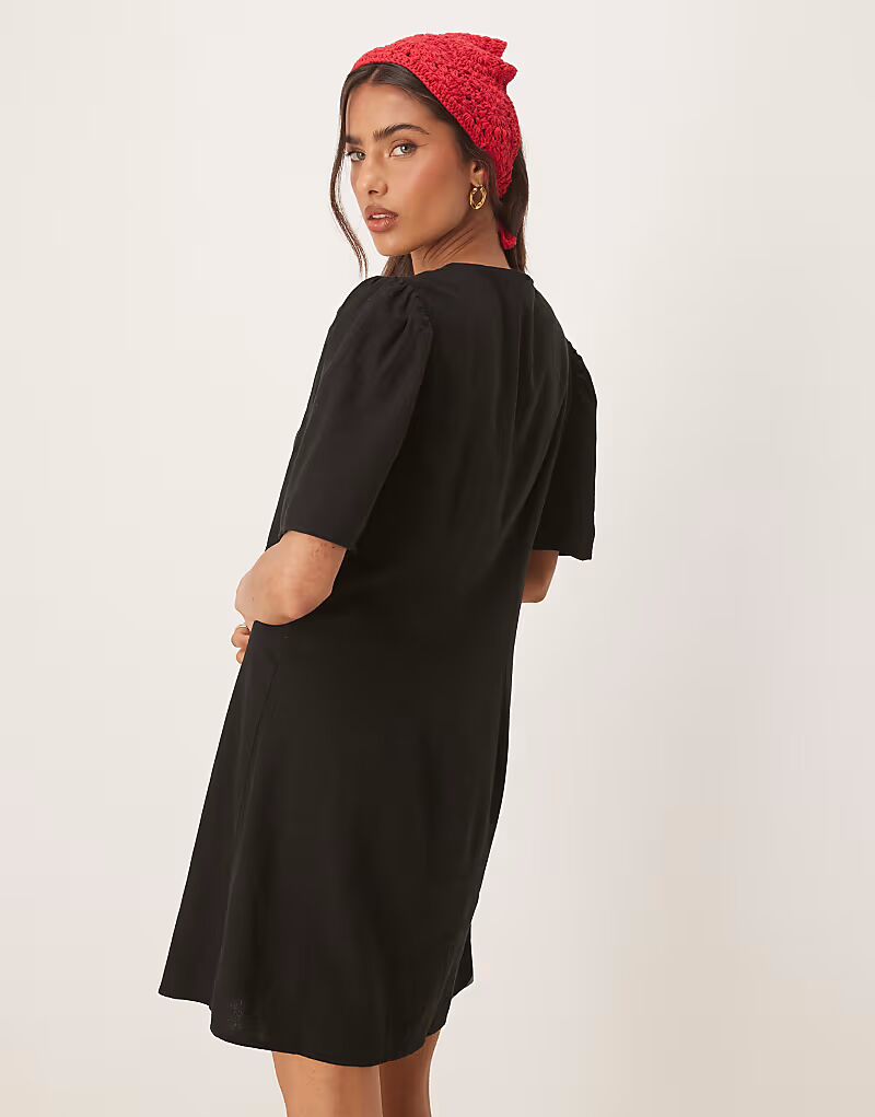 Платье-рубашка мини JDY из льняной смеси черного цвета