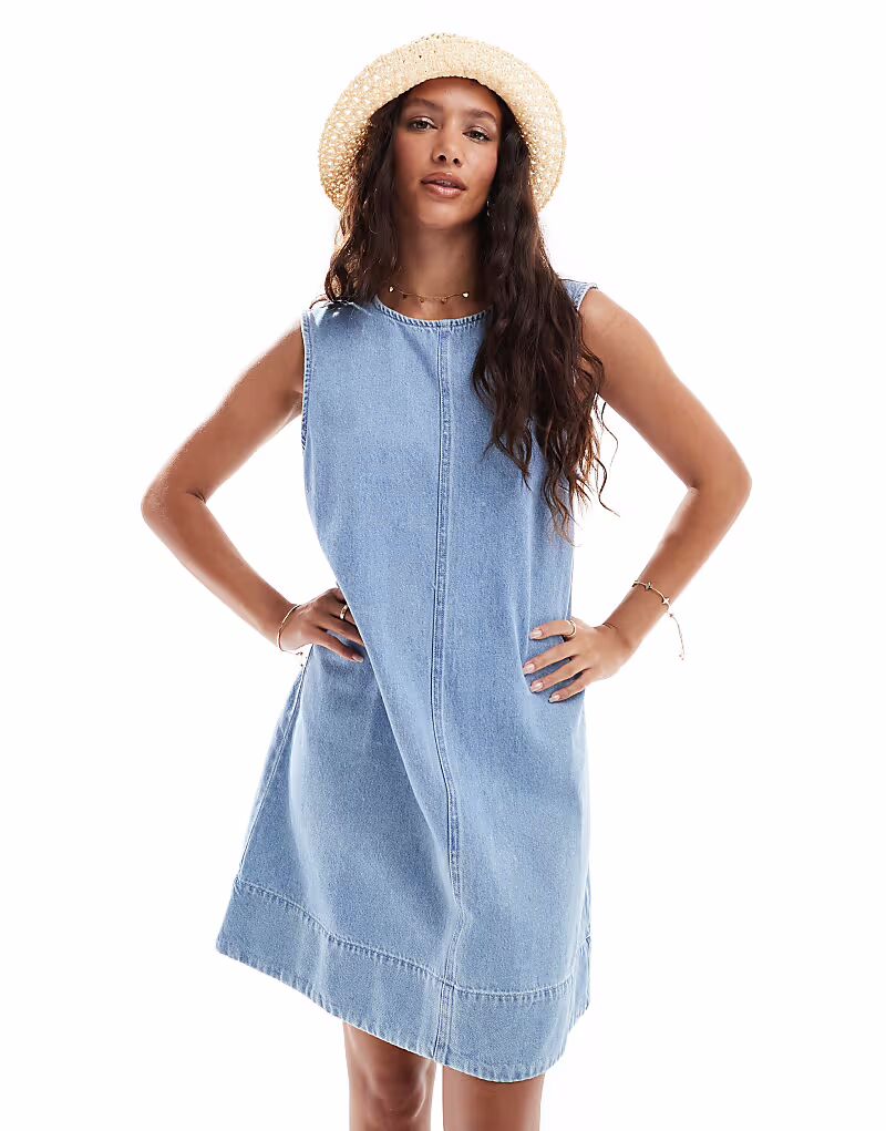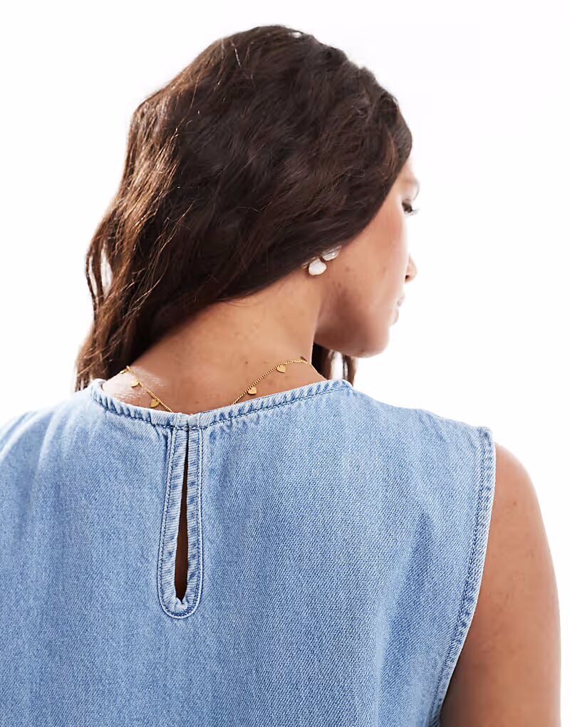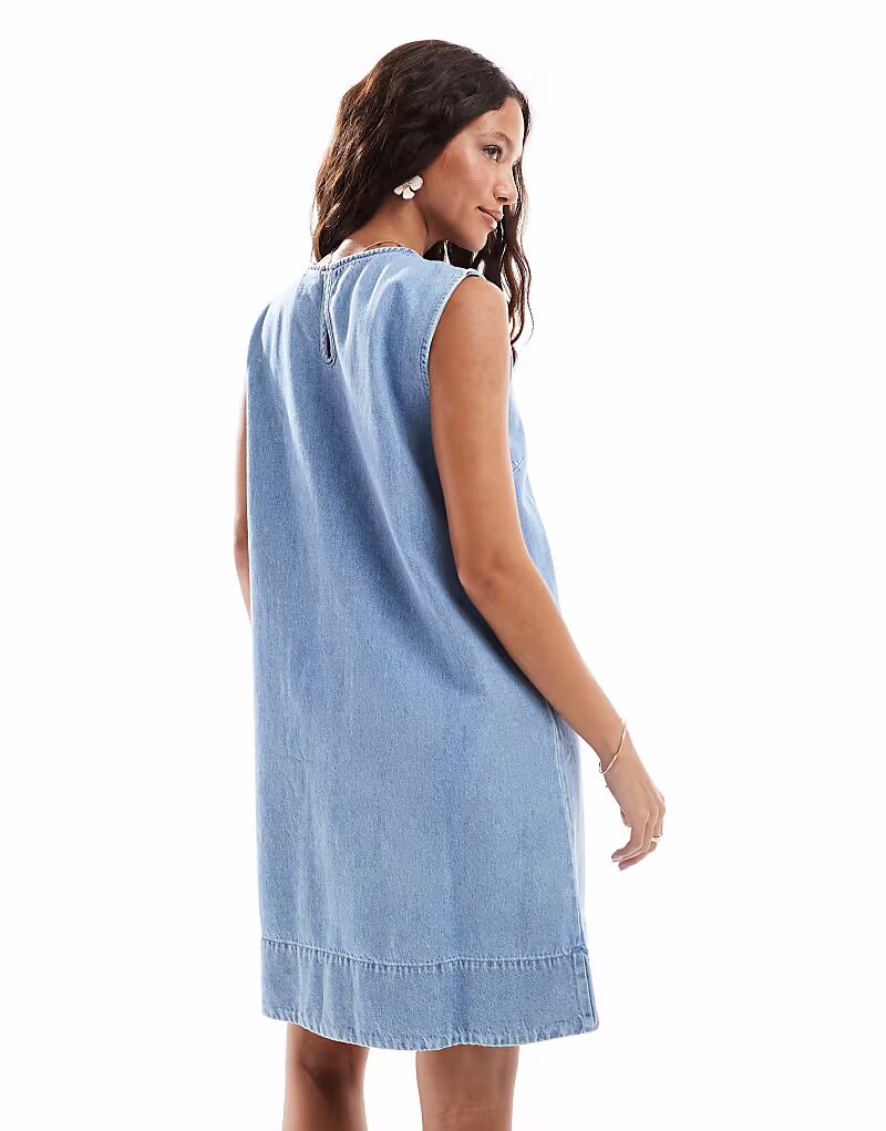 Джинсовое мини-платье без рукавов Pieces светло-голубого цвета