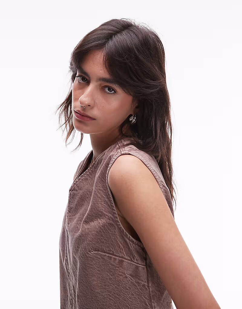 Мини-платье из денима Topshop с v-образным вырезом цвета выдры