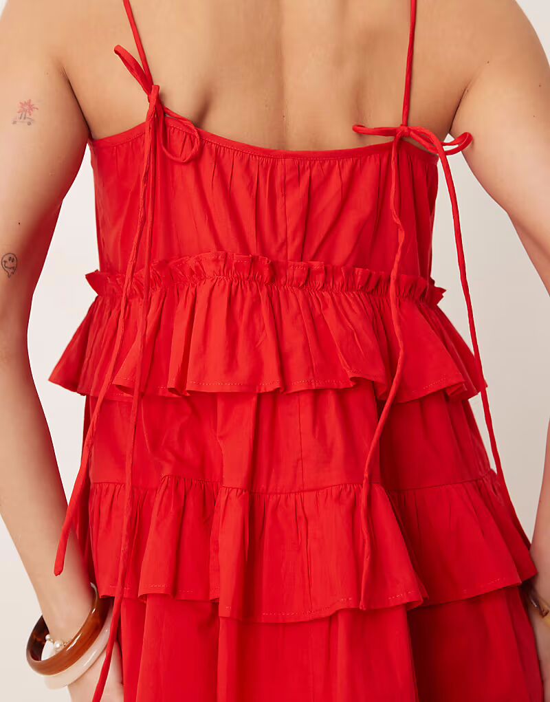Мини-платье с оборками и ярусами ASOS DESIGN красного цвета