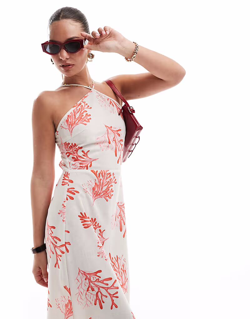 Длинное платье-халтер Vero Moda с коралловым принтом