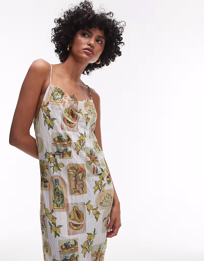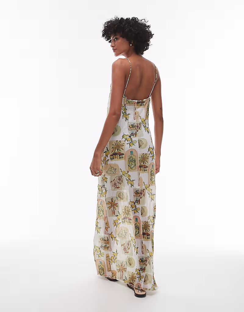 Платье макси Topshop с воротником-хомутиком и цветочным принтом