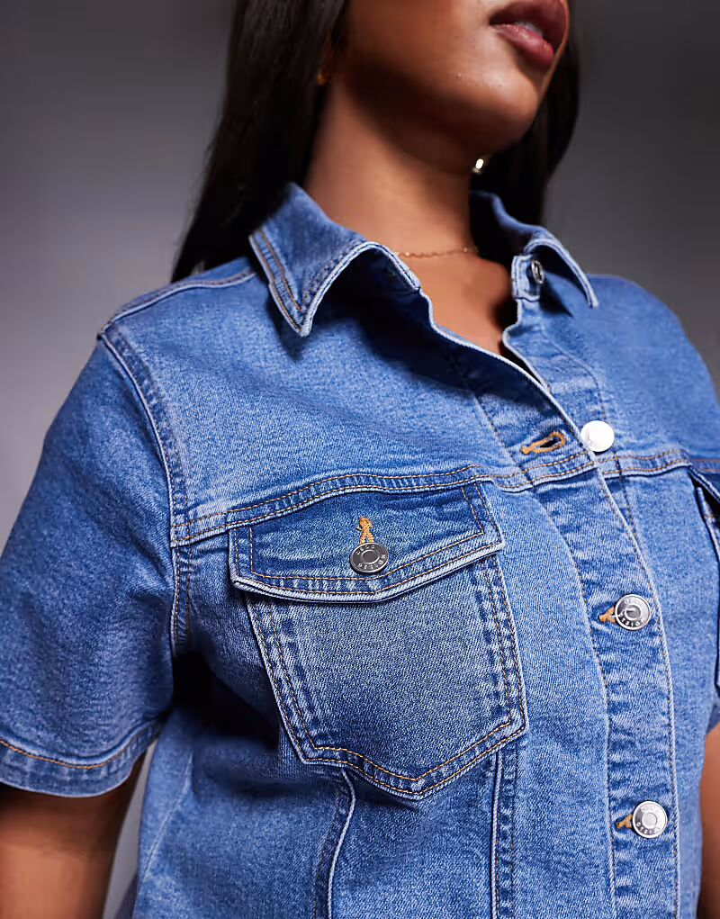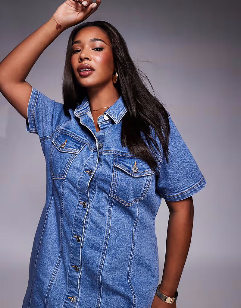 ASOS DESIGN Curve джинсовое облегающее мини-платье-рубашка средне-синего цвета ASOS Curve