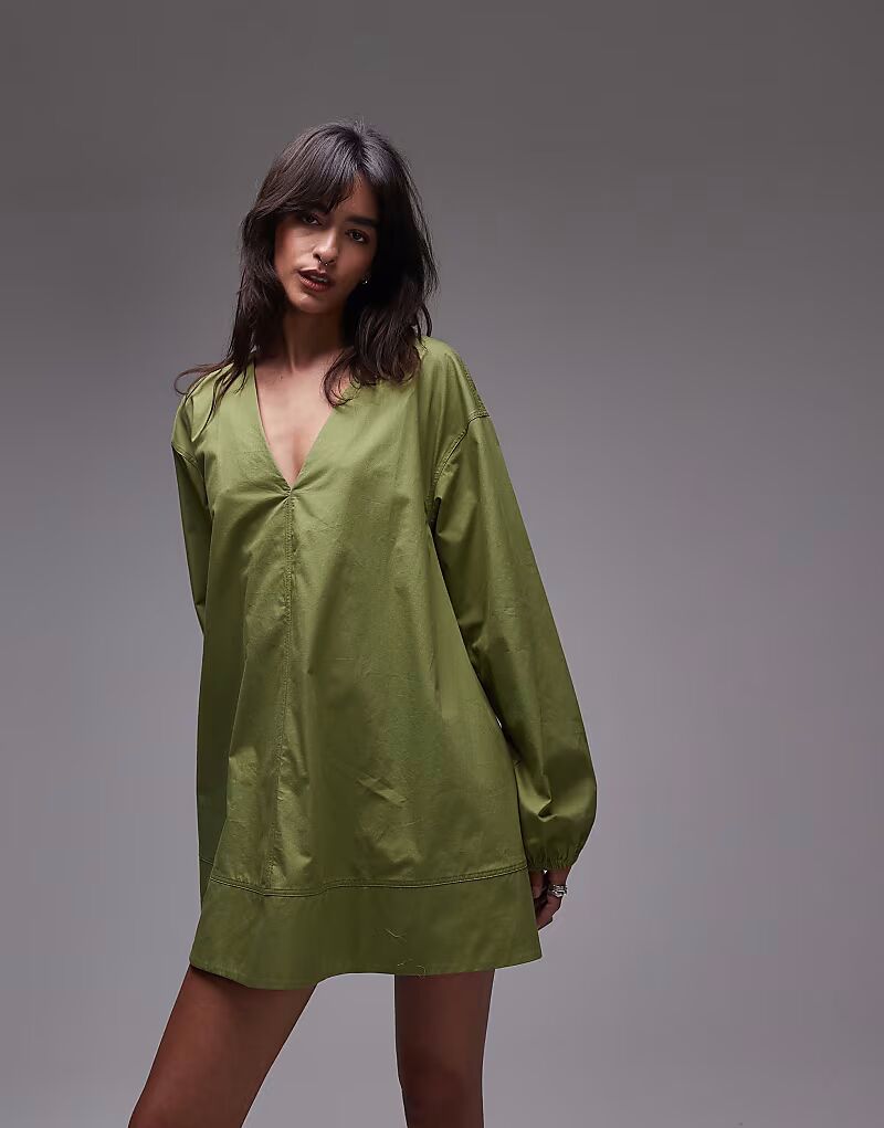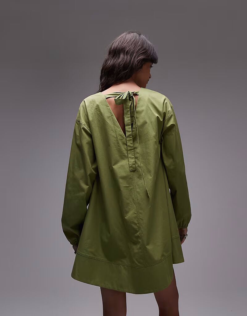 Мини-платье-бэбидолл Topshop из поплина зеленого цвета