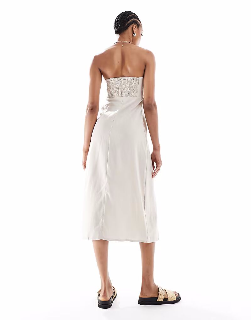 ONLY Tall льняное микс-платье-бандо миди в каменном цвете