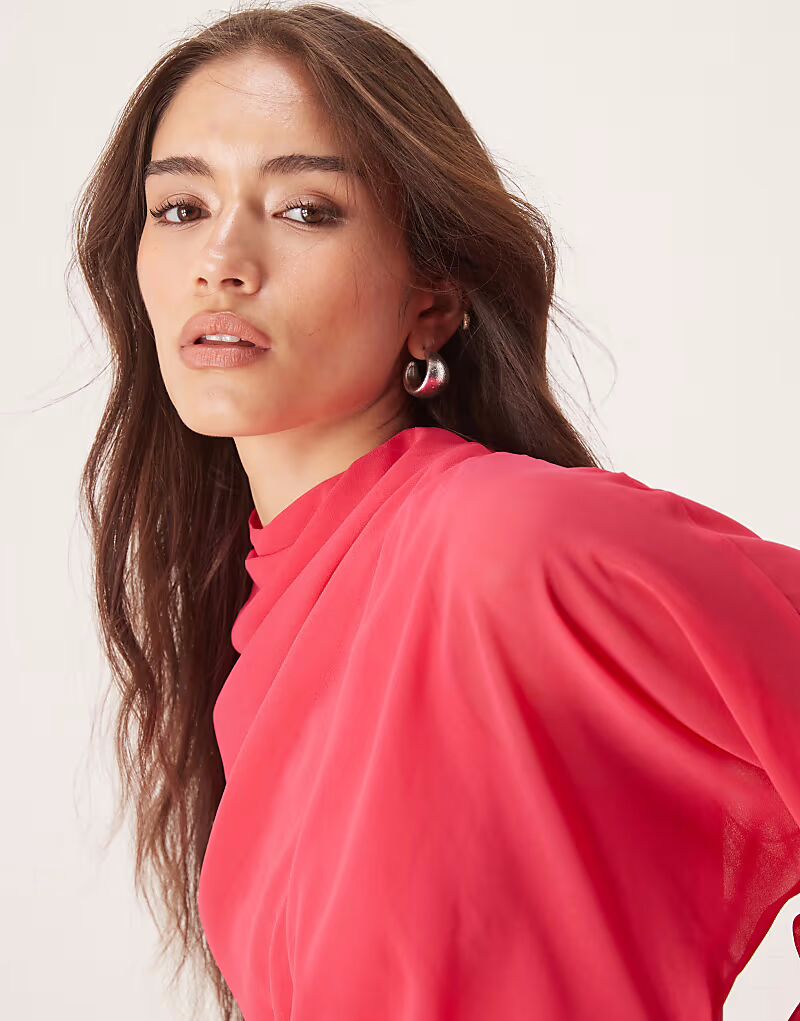 Платье макси с высоким воротом ASOS DESIGN малинового цвета 4 794₽