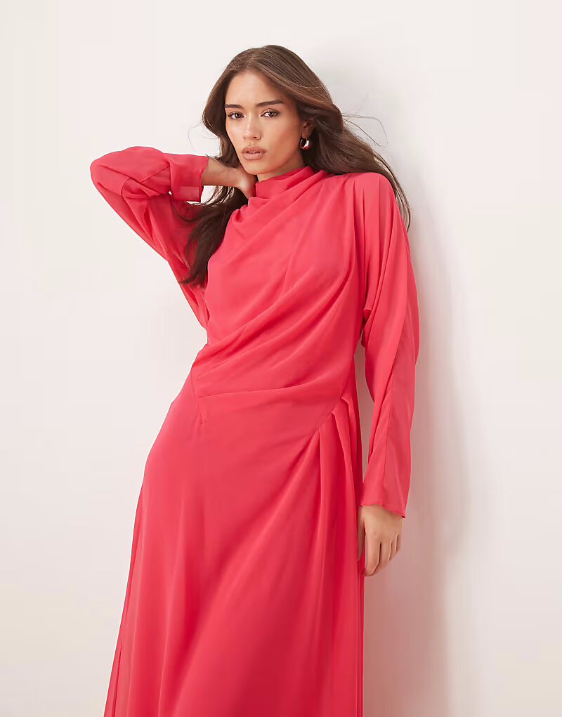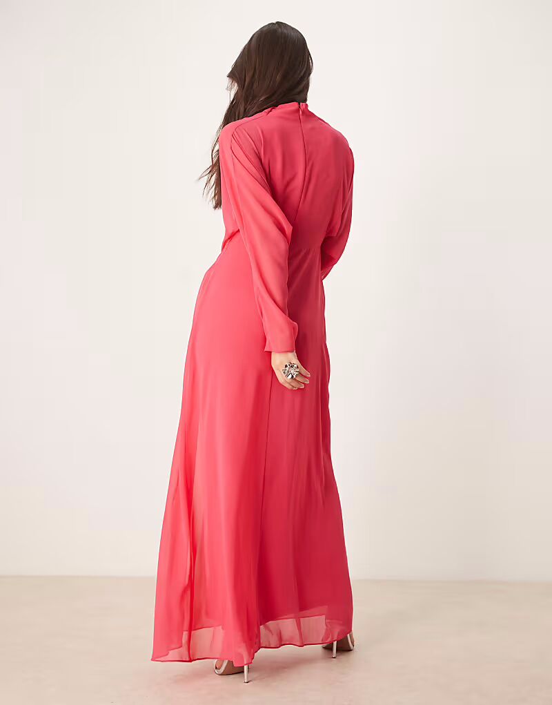 Платье макси с высоким воротом ASOS DESIGN малинового цвета