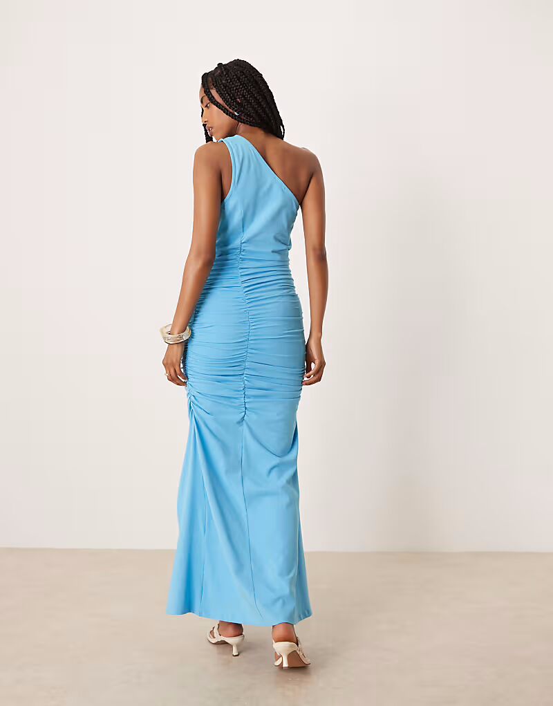Длинное платье ASOS DESIGN на одно плечо со сборками синего цвета
