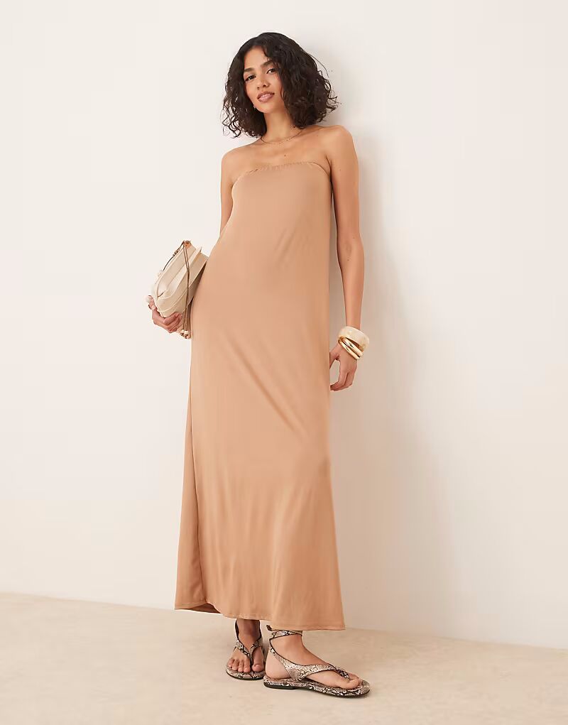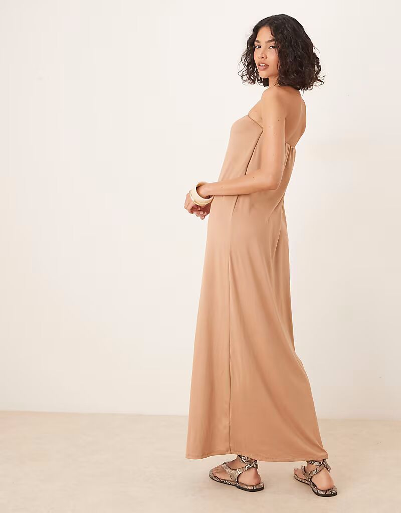 Платье-бандо макси ASOS DESIGN цвета верблюжьей шерсти
